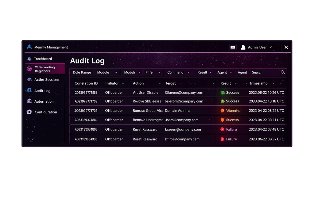 Offboarder makes offboarding timely and consistent by turning access removal into a repeatable, auditable process rather than a manual checklist. It delivers evidence you can trust—complete and accurate logs that stand up to audits and customer security reviews. And it does this without the cost and complexity of heavyweight, highly customized alternatives, reducing operational overhead while lowering risk.